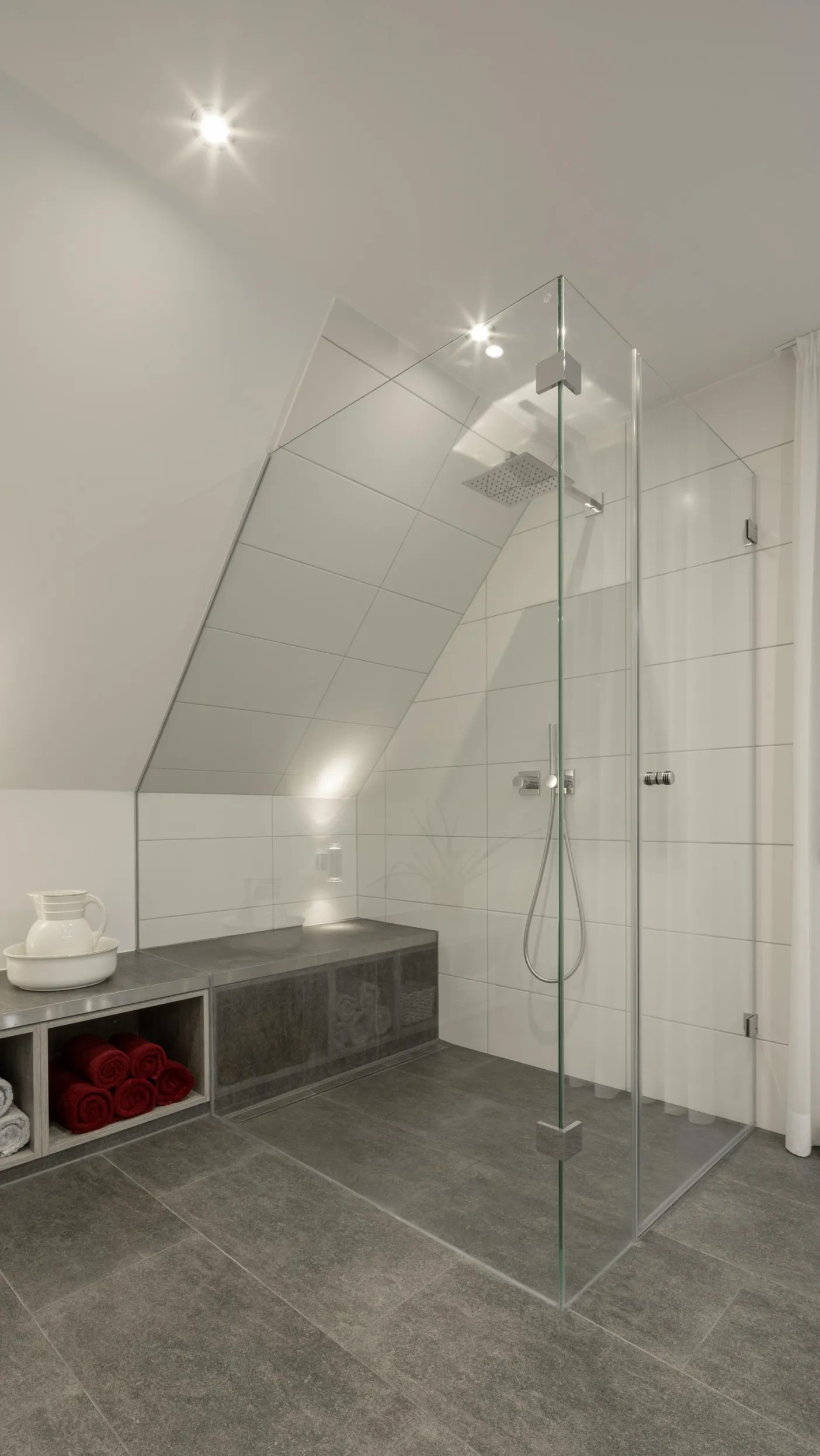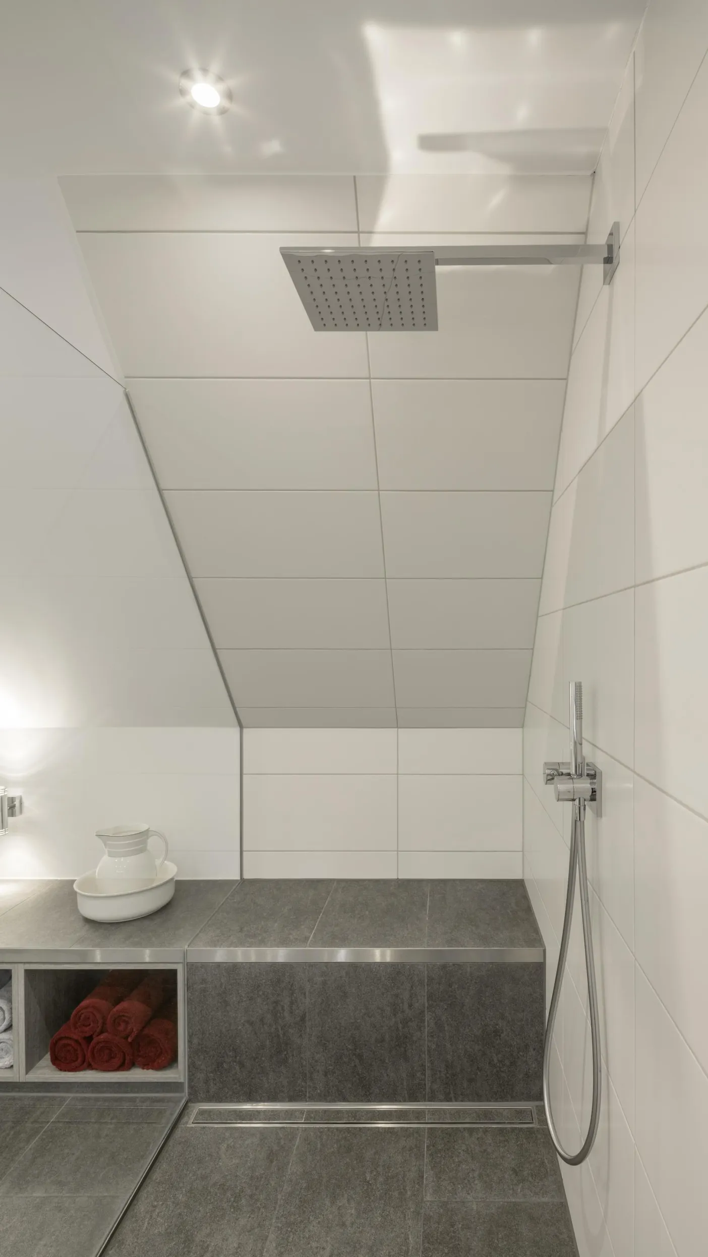 Der Raum unter der Schräge wird im neuen Badezimmer vollständig ausgenutzt.